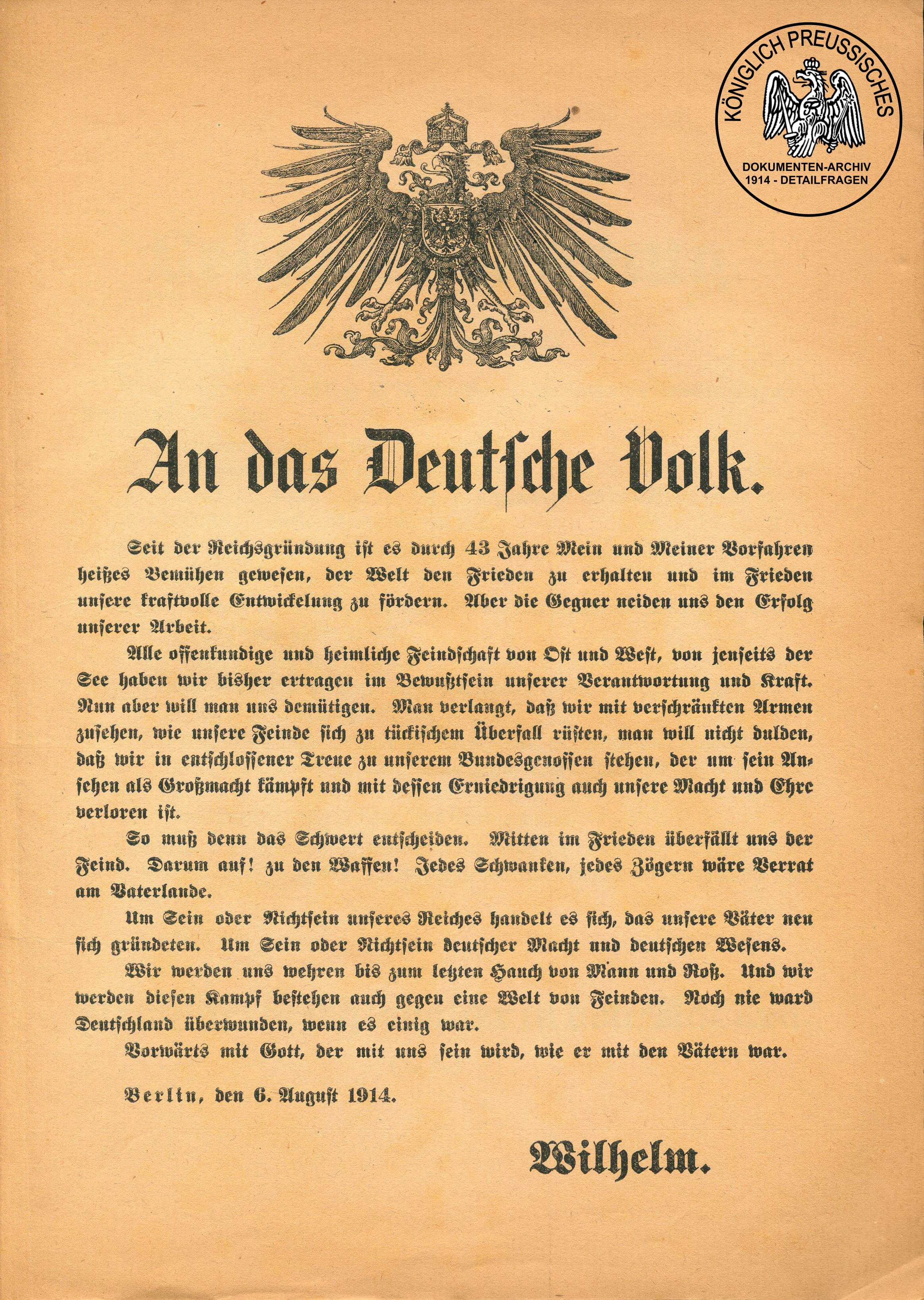 MobilmachungAnspracheKriegsausbruchWilhelm II. |