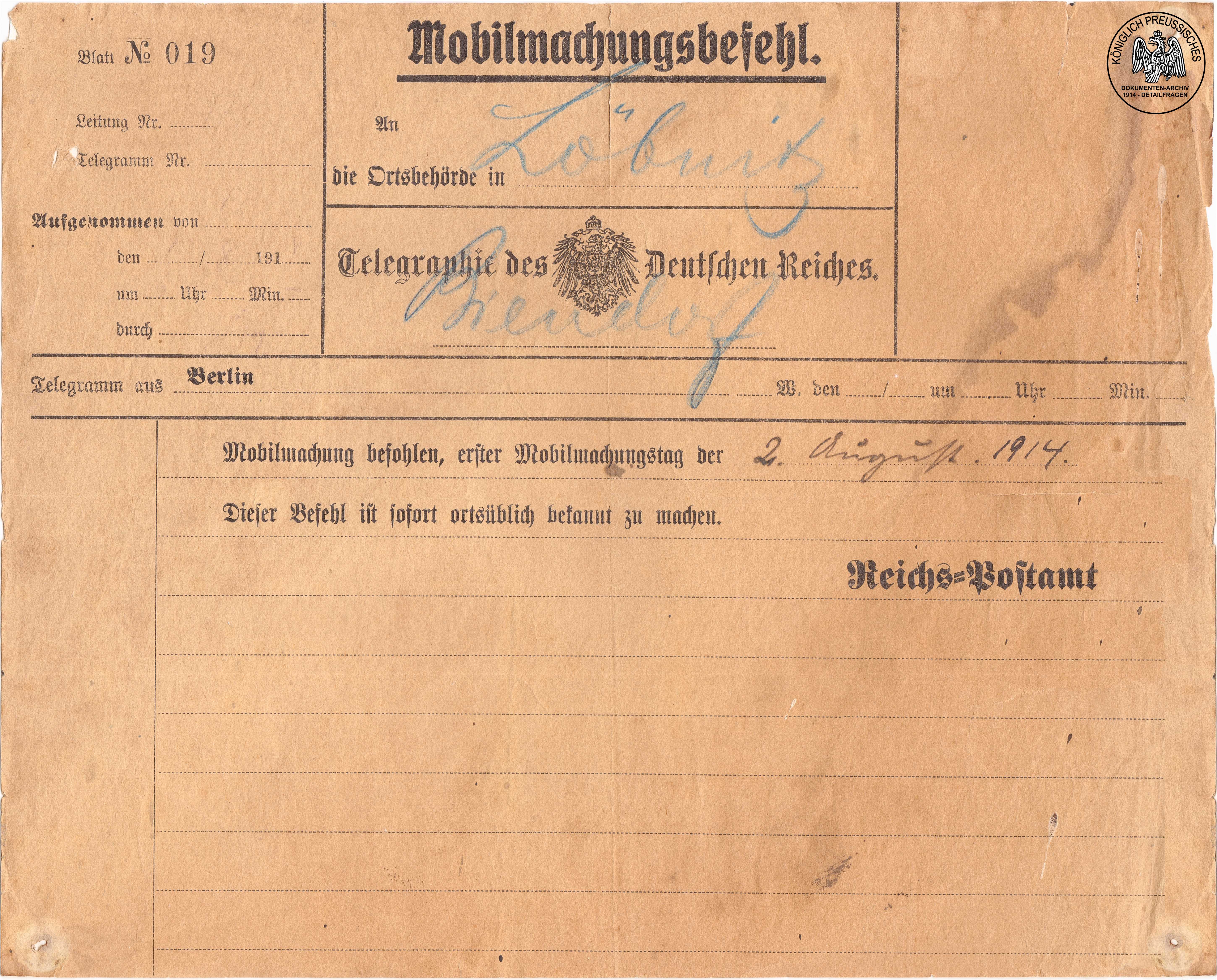 MobilmachungErlaßVerbreitungMobilmachungsbefehlKgr. Württemberg |