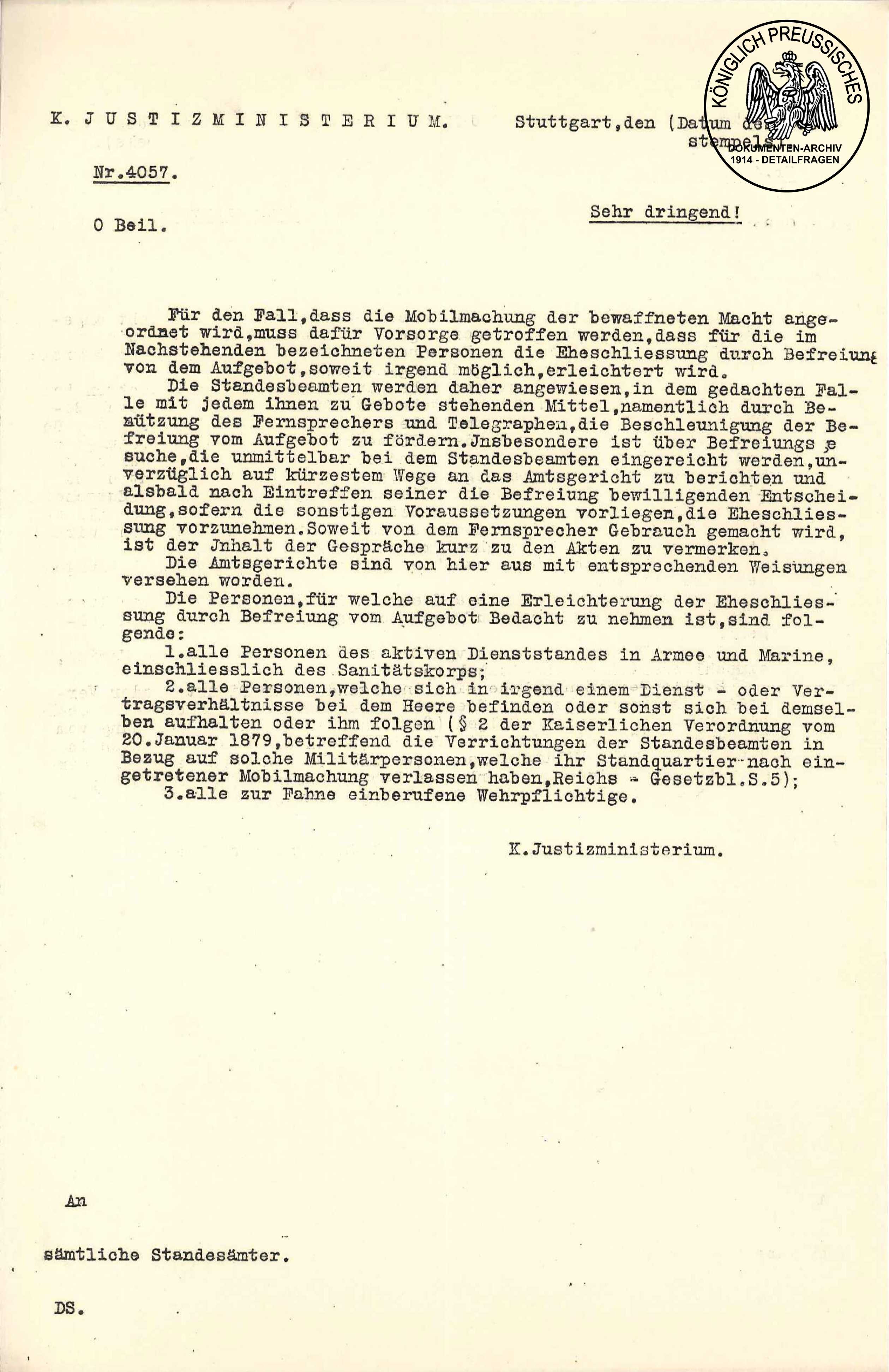 Standesbeamten, im Fall des Mobilmachung durch Verkürzung